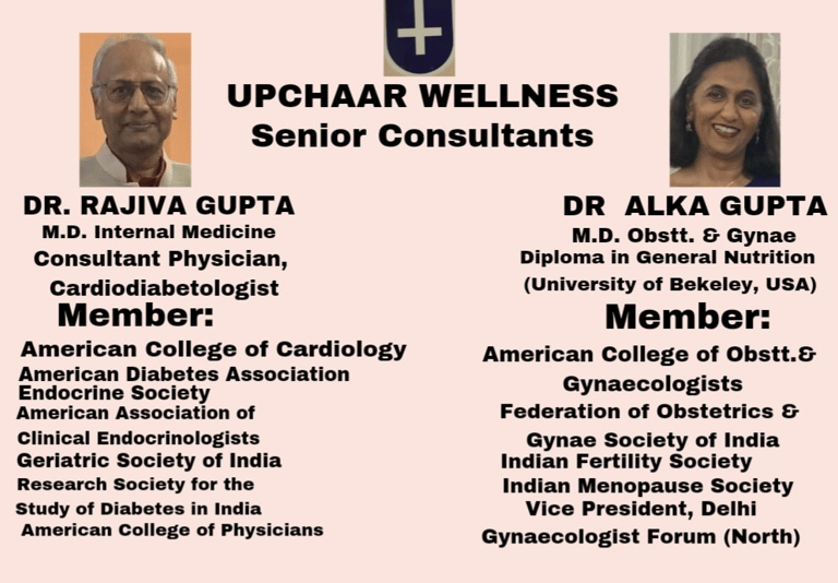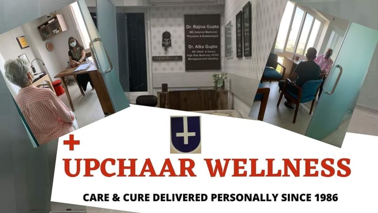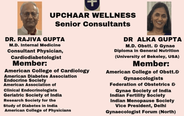 Upchaar Wellness is a medical centre where Care & Cure have been delivered personally since last 40 years. The Upchaar Wellness Clinic was started in 1986 with the theme 'Care and Cure... Delivered Personally', by senior consultants Dr Alka Gupta and Dr. Rajiva Gupta.
